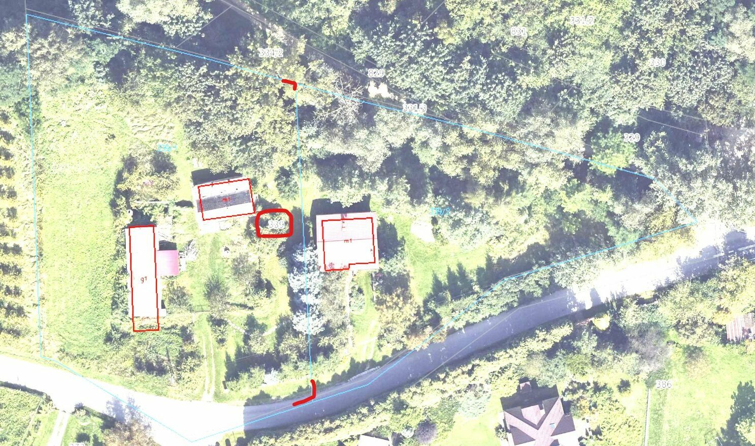 działka budowlana ~40arów (z możliwością dokonania innego podziału – szczegóły na zdjęciu satelitarnym),
